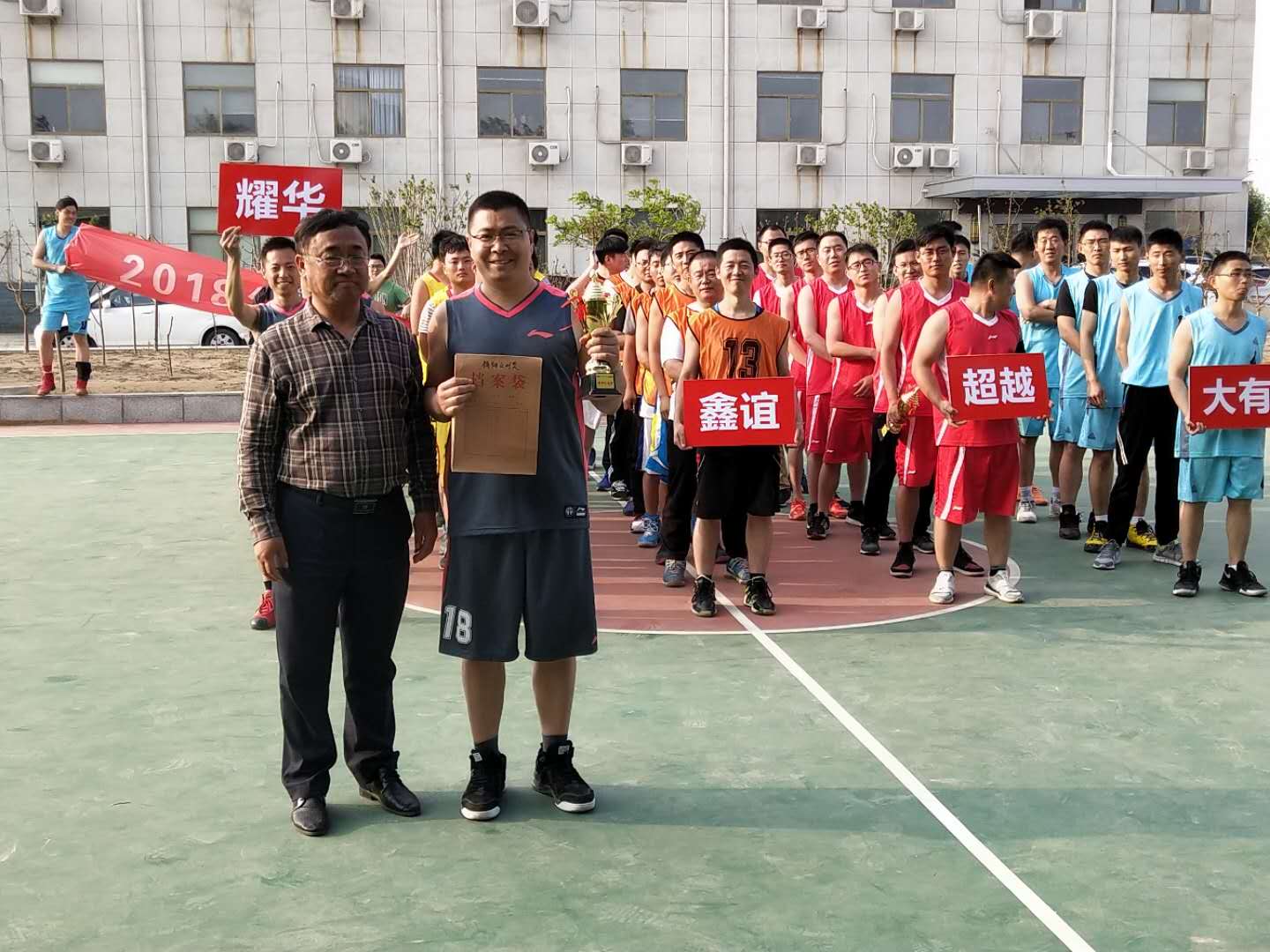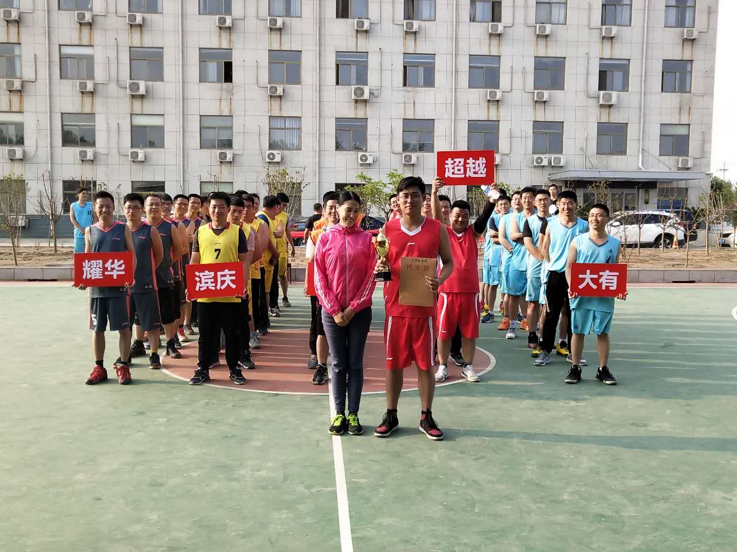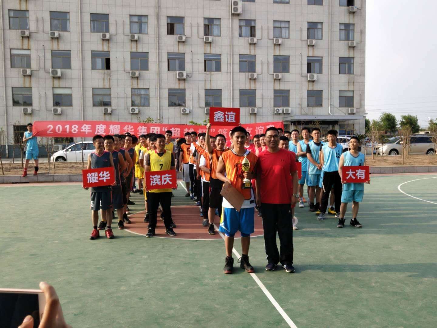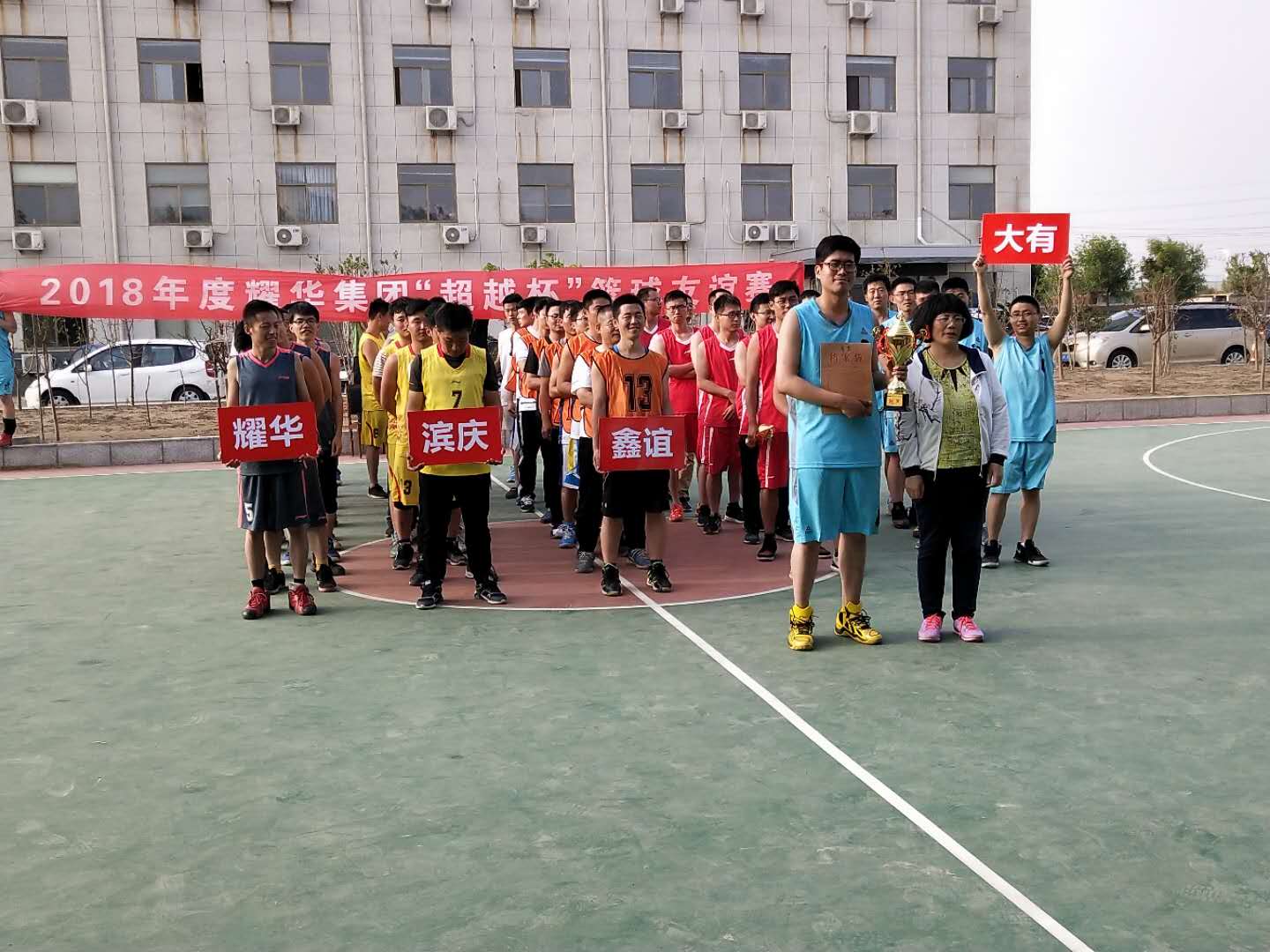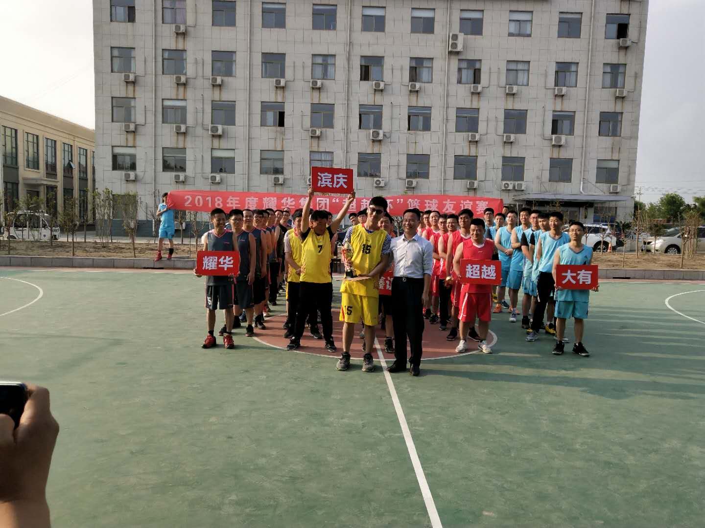 2018年5月19日,由濱州大有新能源開發(fā)有限公司主辦的2018耀華集團(tuán)“超越杯”籃球友誼賽在大有公司成功開幕,本次比賽共5支隊(duì)伍,分別為:耀華隊(duì)、大有隊(duì)、濱慶隊(duì)、超越隊(duì)、鑫誼隊(duì)。